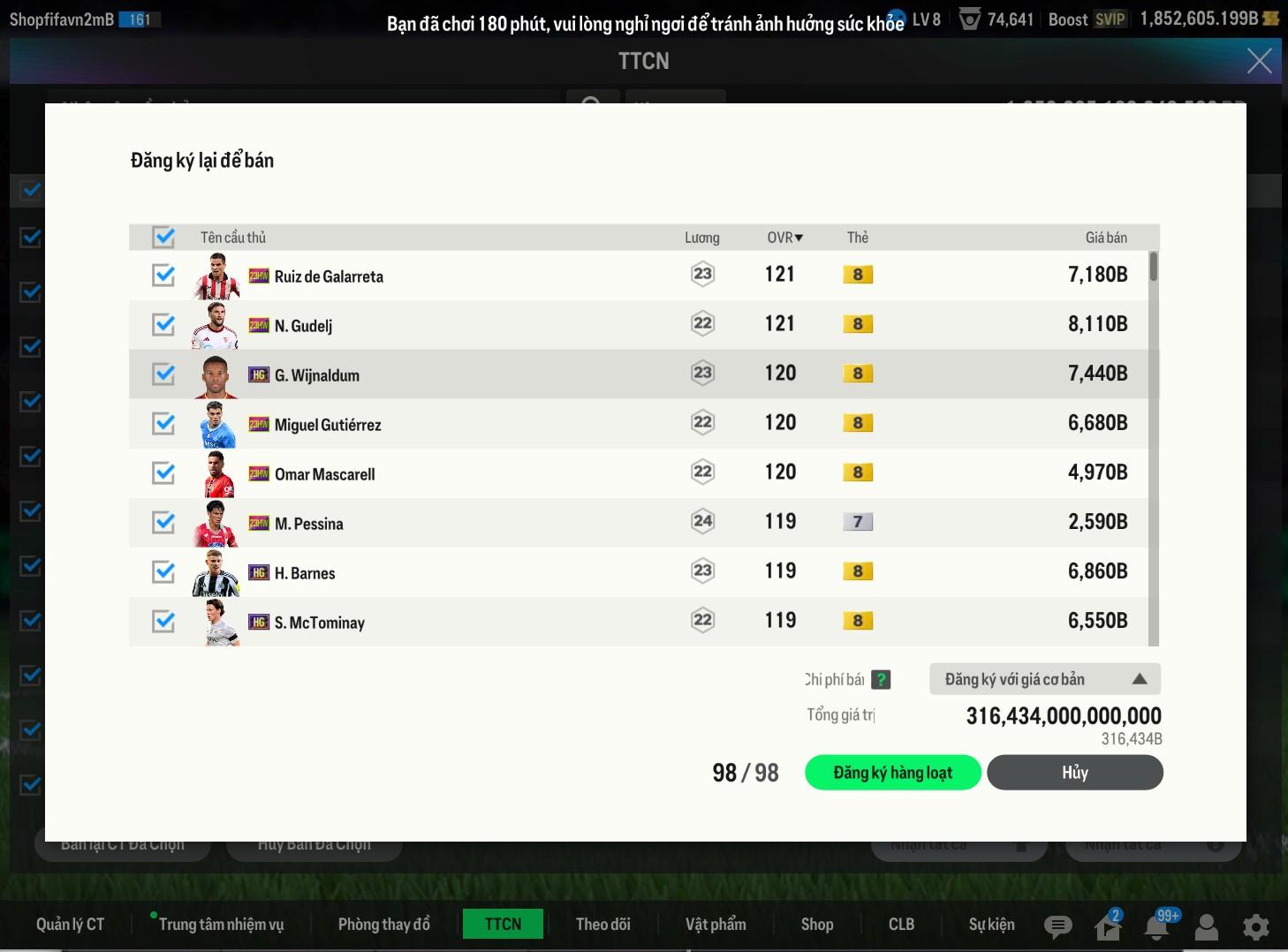 Lưu ý: Tài khoản chỉ chứa ký tự và số A-Za-z0-9