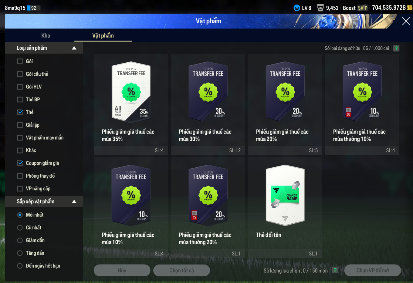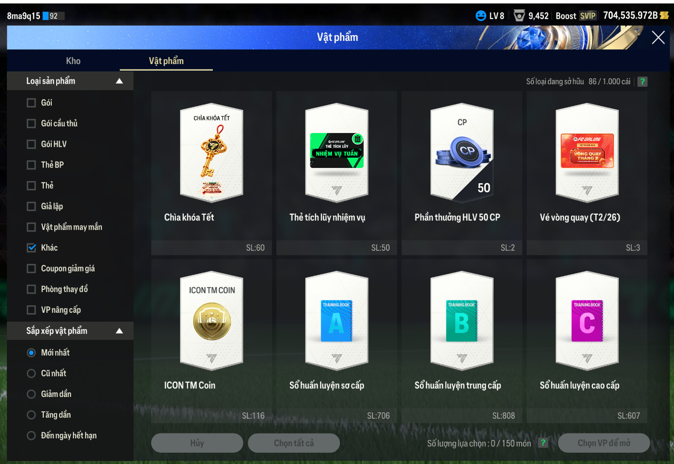 Lưu ý: Tài khoản chỉ chứa ký tự và số A-Za-z0-9