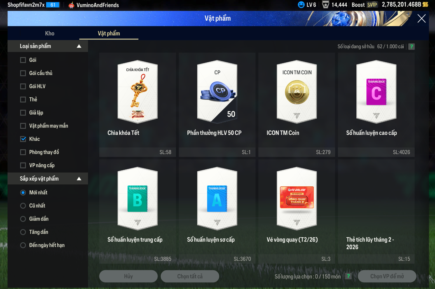 Lưu ý: Tài khoản chỉ chứa ký tự và số A-Za-z0-9