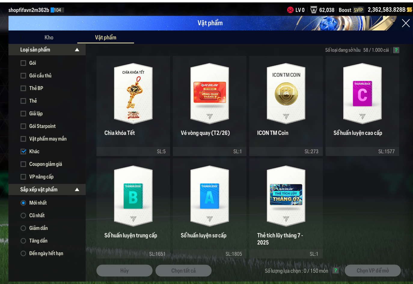 Lưu ý: Tài khoản chỉ chứa ký tự và số A-Za-z0-9