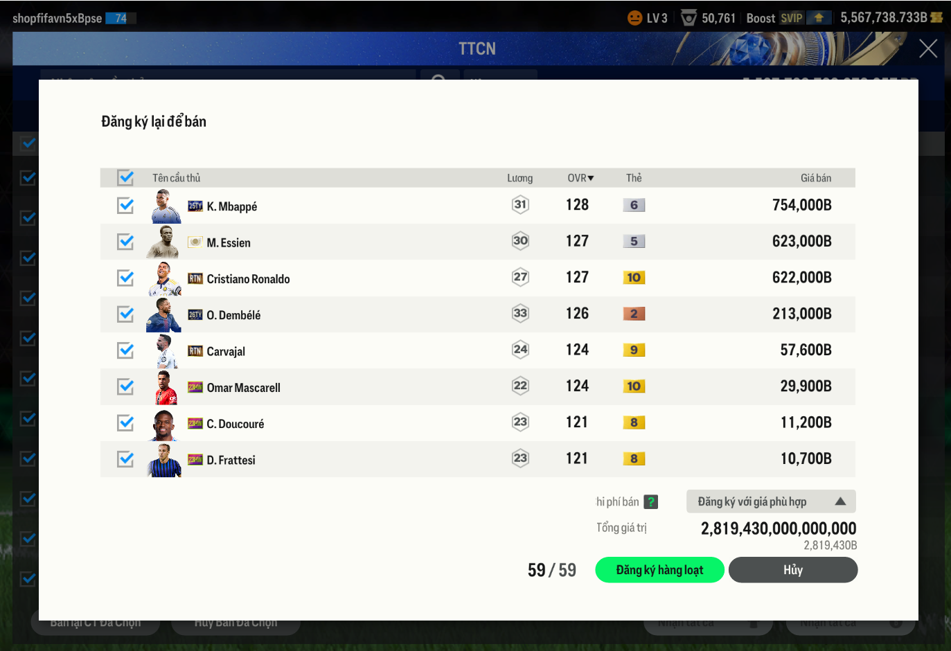 Lưu ý: Tài khoản chỉ chứa ký tự và số A-Za-z0-9
