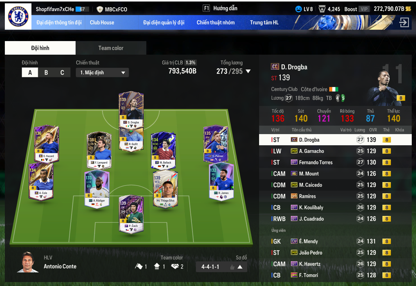 Team color: Chelsea