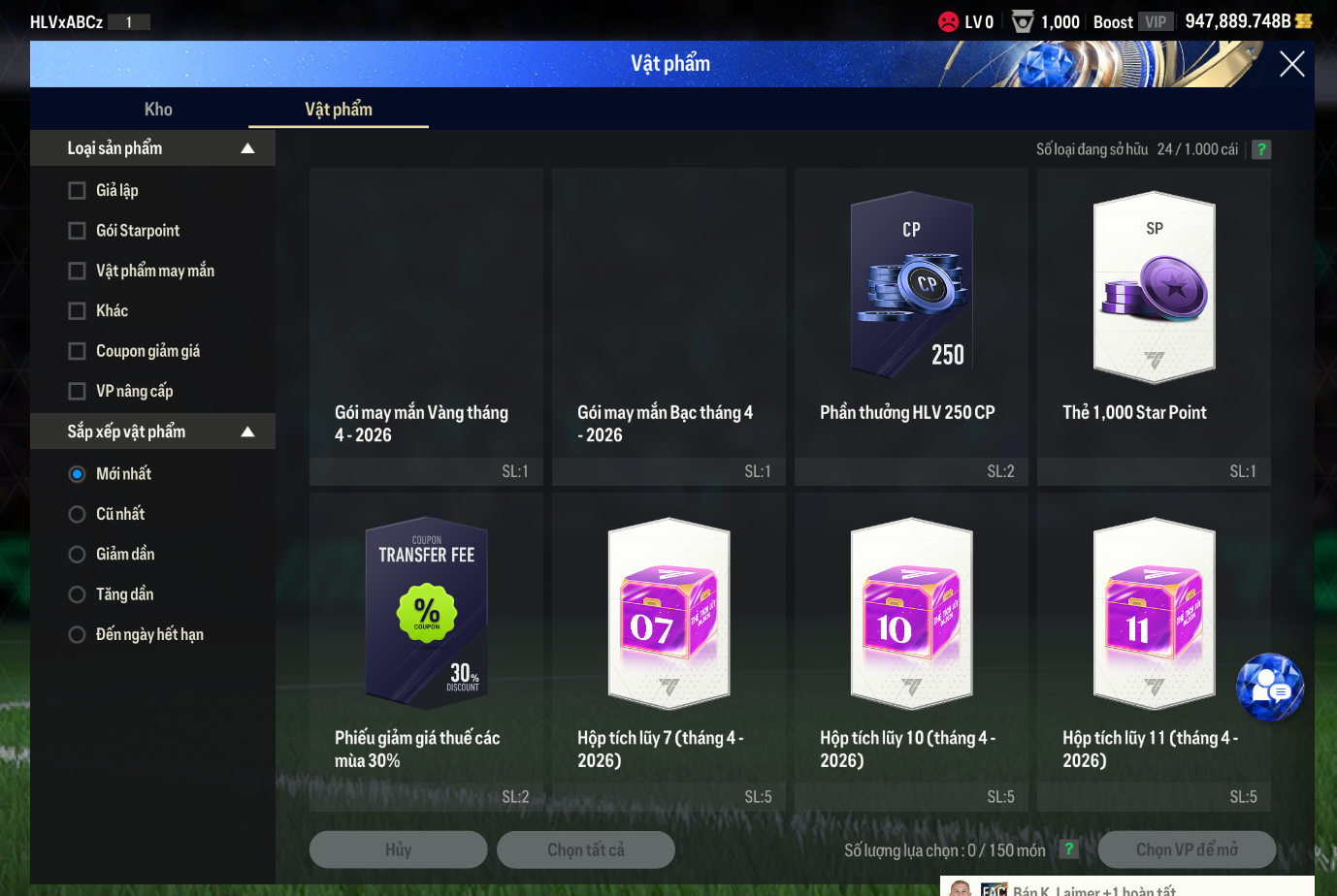 Lưu ý: Tài khoản chỉ chứa ký tự và số A-Za-z0-9