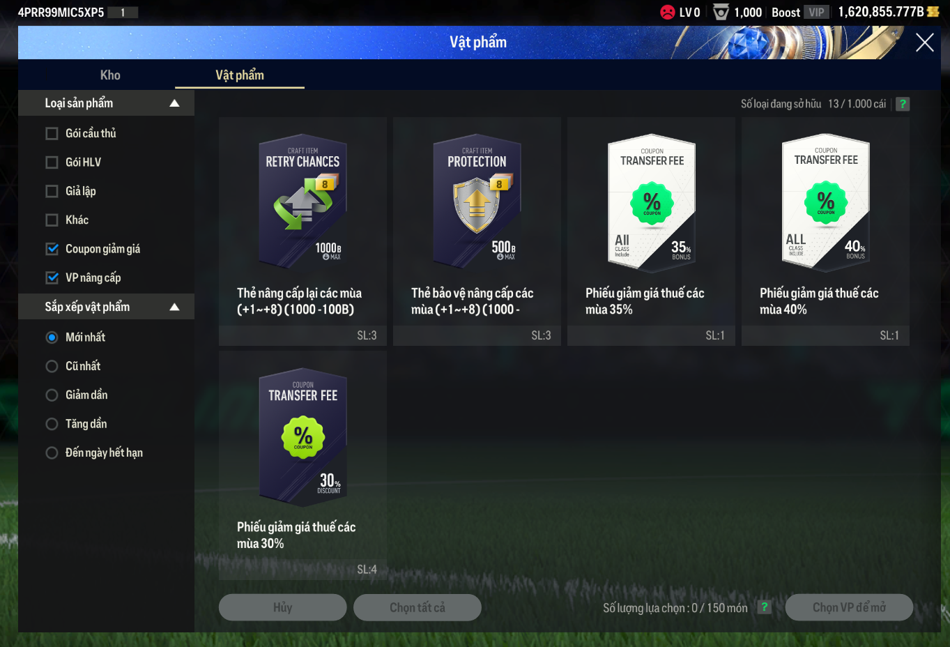 Lưu ý: Tài khoản chỉ chứa ký tự và số A-Za-z0-9